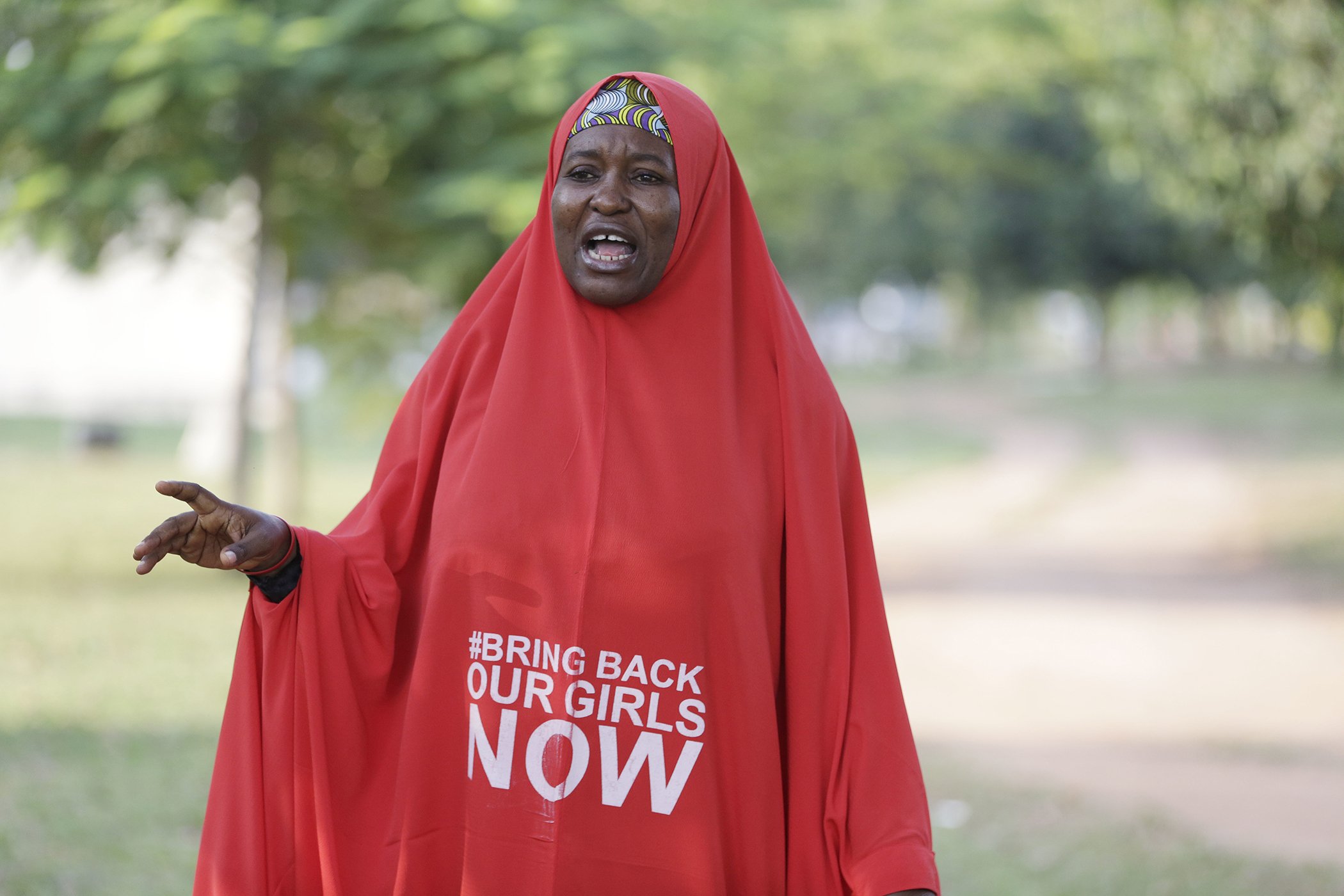 Bring Back Our Girls activist Aisha Yesufu speaks during an interview in Abuja, Nigeria, Oct. 14, 2016.
