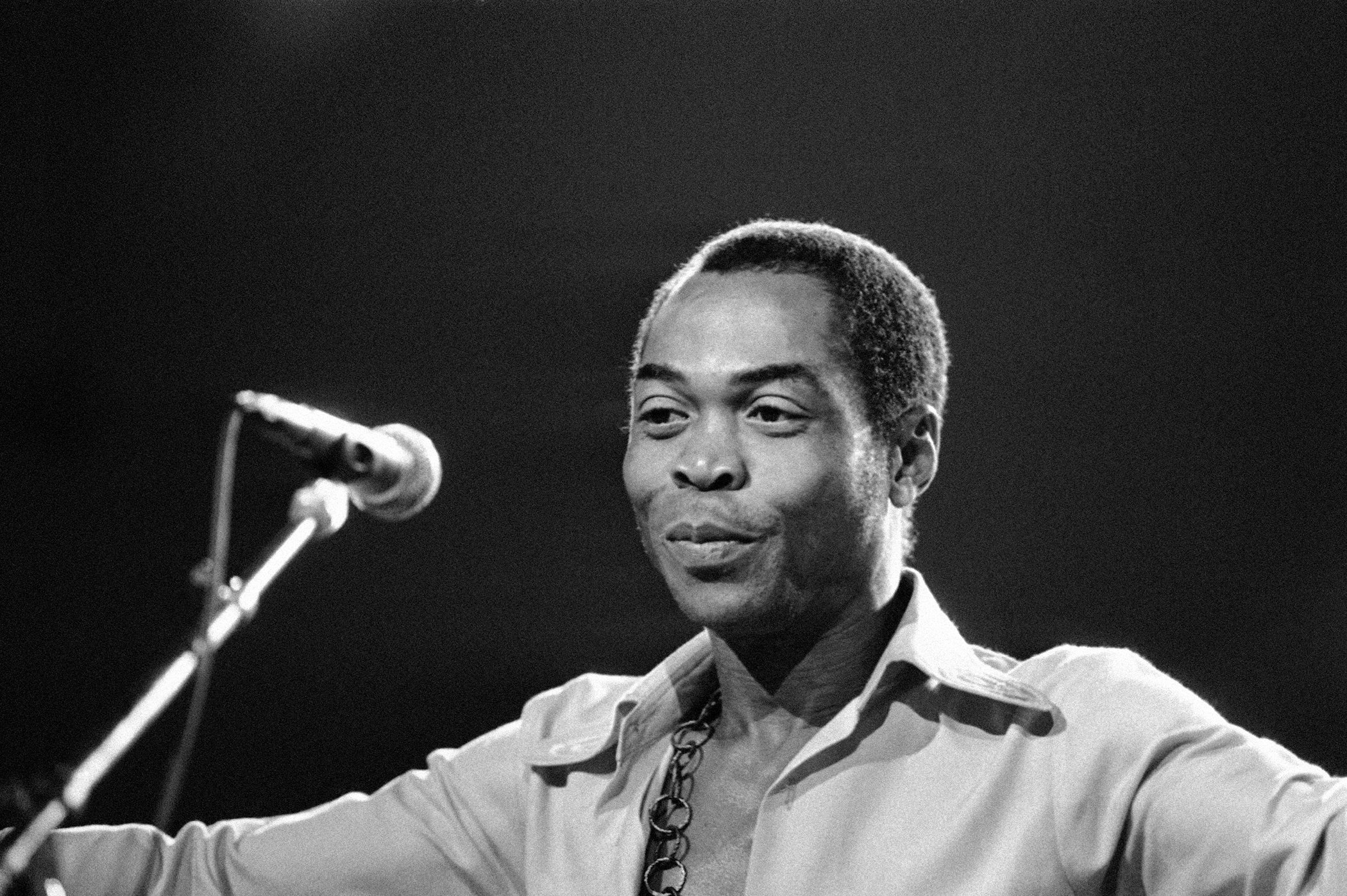 Nigerian musician and composer Fela Anikulapo Kuti performs on September 13, 1986 at the “Party of Humankind” of the French Communist Party at La Courneuve in Paris, France.